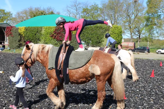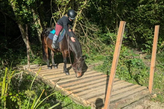 Ateliers pour évoluer avec son partenaire poney ou cheval dans différents espaces : manège, carrière, parcours nature ou sur la route.